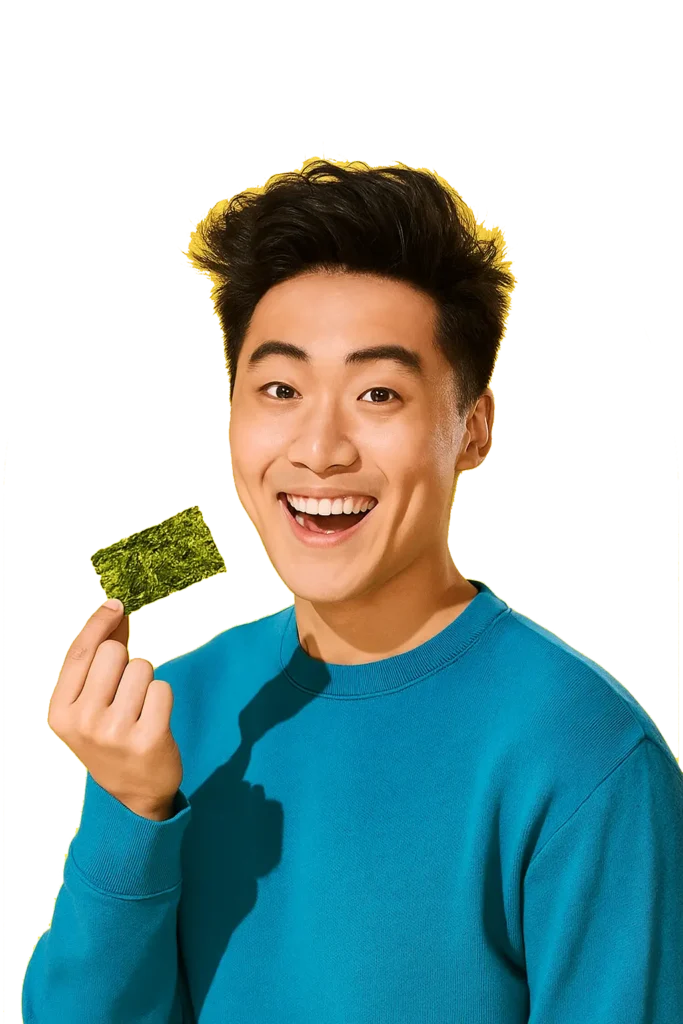 Our seaweed is grown in Korea by Iljo Fisheries, led by Chairman Kim with 40+ years of cultivation experience — making us one of the few with direct ocean-farm access.